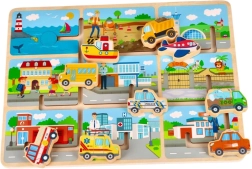 Odlično zasnovana sestavljanka zagotavlja, da je vsako vozilo povezano s pripadajočo sceno, kar ustvarja zabavno in poučno okolje za razvoj otrok. Lesena konstrukcija zagotavlja dolgo življenjsko dobo in naraven občutek na dotik.