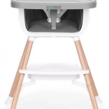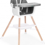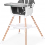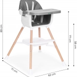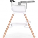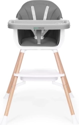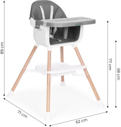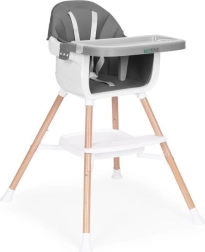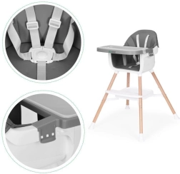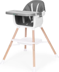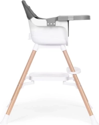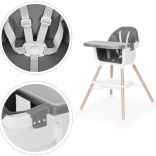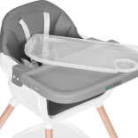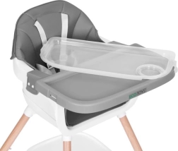 Ta sodoben stolček olajša skupno obedovanje – otrok lahko sedi za mizo, opazuje, posnema in usvaja pravilne navade. Širok pladenj služi ne le za hranjenje, temveč tudi za igro, risanje ali sestavljanje kock, zato bo hitro postal priljubljen kos otroškega pohištva.