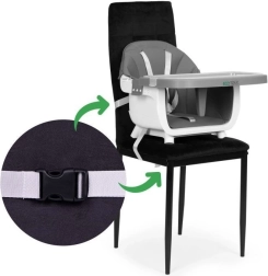 Različica 2 v 1 omogoča odstranitev nog in varno pritrditev sedeža s trakovi na običajen stol – idealno za na pot ali za jedilno mizo.