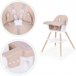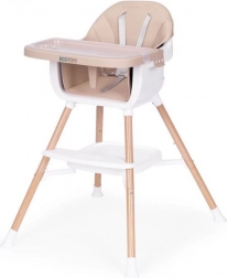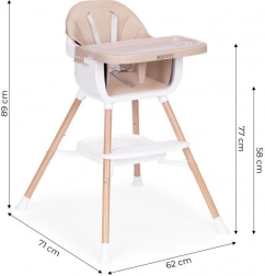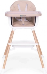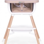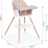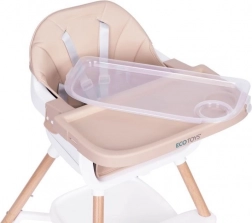 Praktični otroški jedilni stolček 2 v 1 znamke ECOTOYS raste z vašim otrokom od 6 do 36 mesecev. Ponuja visoko stabilnost zahvaljujoč kovinskim nogam, enostavno vzdrževanje zaradi eko usnja in odstranljivega dvoslojnega pladnja, primernega za pomivalni stroj. Za varnost skrbita 5-točkovni pas in protizdrsni zatič, za udobje pa opora za noge ter odlagalna polica pod sedežem. Uporabljate ga lahko kot visok stolček ali kot nastavek na klasičen stol – idealno tudi za na pot.
