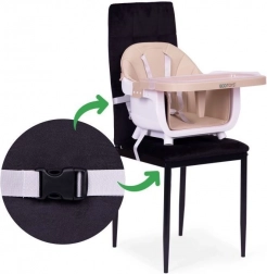 2 načina uporabe – doma in na poti: Stolček lahko uporabljate kot klasičen visok stolček ali po odstranitvi nog kot nastavek na običajen stol. Pritrditveni trakovi držijo sedež trdno na mestu, zato lahko otrok varno je kjerkoli.