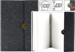 Eleganten črni zvezek v formatu A5 je idealen za organizacijo vaših misli in vsakodnevno načrtovanje. Močno magnetno zapiranje in tkanina za zaznamke zagotavljata udobno in varno uporabo.