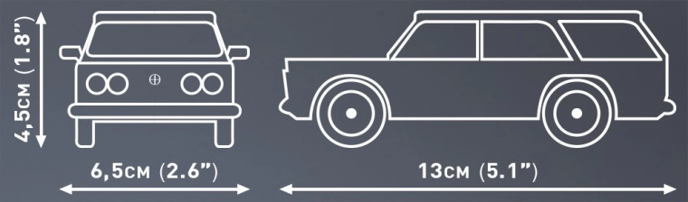 Licenčni model iz kock FSO 125p Kombi zvesto ujame značilne obline legendarnega družinskega vozila, znanega po prostornem prtljažniku in zanesljivosti. Merilo 1:35 ponuja uravnoteženo razmerje med podrobnostmi in velikostjo, zato je model primeren tako za razstavni prostor kot za igro.