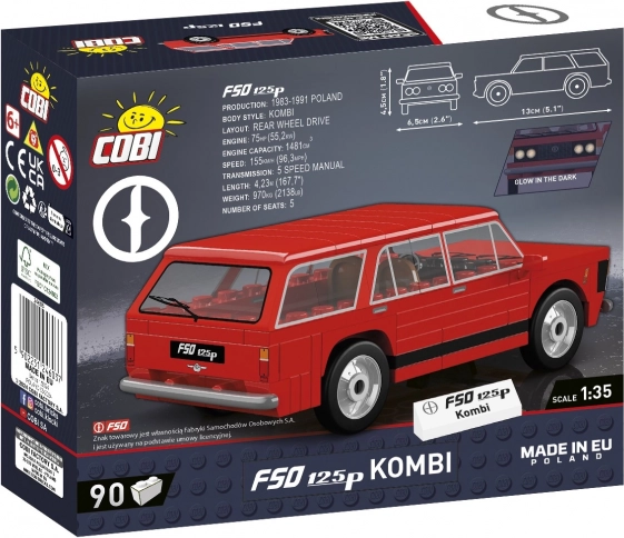 Sestavite ikonično vozilo FSO 125p Kombi v merilu 1:35 iz 90 kakovostnih kosov. Model s trpežnimi potiski, vrtečimi se kolesi in odlično združljivostjo z drugimi znamkami je idealen za zbiratelje in otroško zabavo.