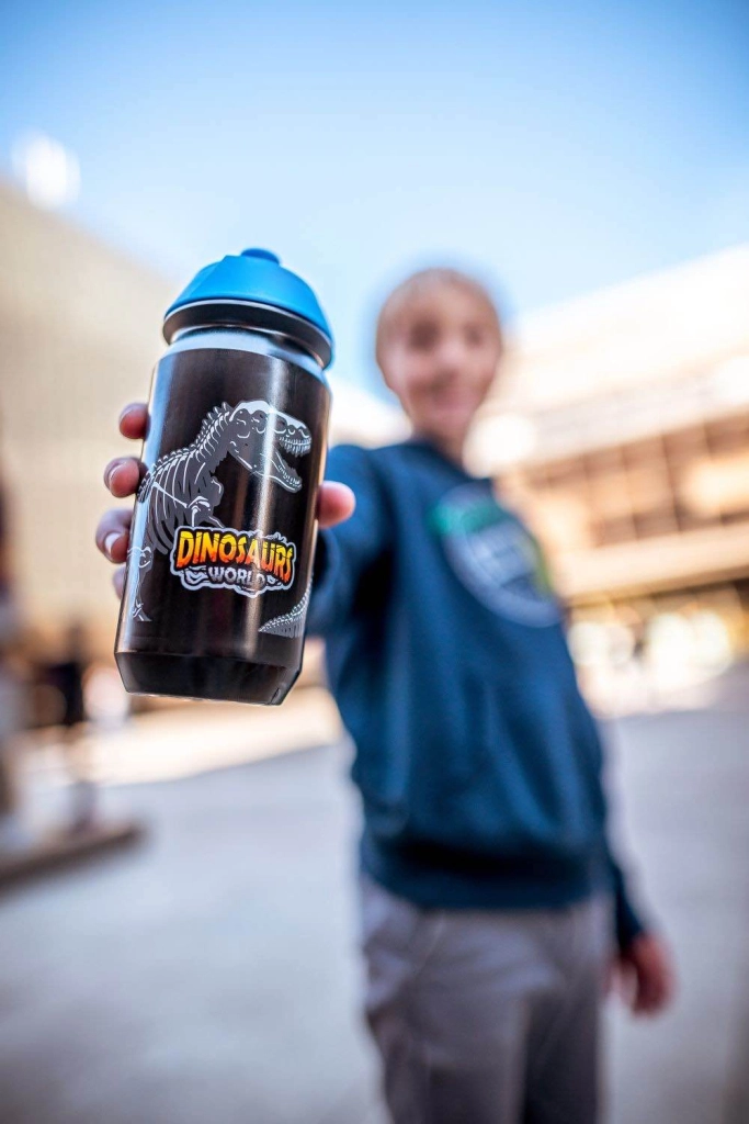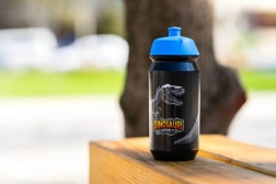 Elegantna steklenička za pijačo z motivom dinozavrov, idealna za današnje pustolovske otroke. Praktična in varna za vsakodnevno uporabo.