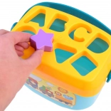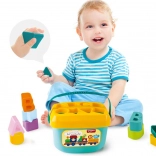 Rumeni pokrov z izrezi vodi otroke k pravilnemu ujemanju oblik. Spodbuja logično razmišljanje in natančnost gibov.