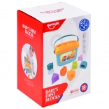 Barvit izobraževalni komplet z vedrom in kockami bo razveselil vsakega malčka. Pokrov vedra služi kot razvrščevalnik oblik, delčki pomagajo pri prepoznavanju barv in črk ter spodbujajo fino motoriko in oko–roka koordinacijo. Praktičen ročaj za enostavno prenašanje in kakovostna plastična izdelava zagotavljata varno in zabavno igro.