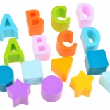 Barviti delčki motivirajo otroke k raziskovanju. Vadijo razlikovanje oblik in barv ter se na zabaven način spoznavajo s črkami.