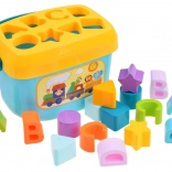 Ta pametni set združuje zabavo in učenje v enem. Otroci vstavljajo oblike v ustrezne odprtine v pokrovu, s čimer urijo logično mišljenje, razvrščanje in vizualno zaznavanje. Z barvitimi elementi in črkami si naravno osvajajo osnove abecede in razlikovanja oblik.