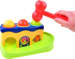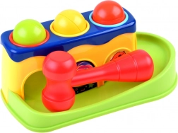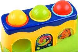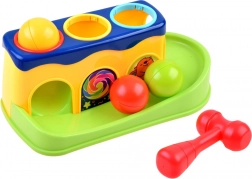Ta interaktivna igrača prinaša otrokom veselje ob odkrivanju: naloga je s pomočjo rdečega kladivca nežno udariti po kroglicah v odprtinah, da padejo navzdol in se zapeljejo po toboganu. Zahvaljujoč živim barvam in trpežni plastiki, ki se ne obrablja, bodo otroci uživali v dolgih urah igrivega učenja.