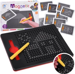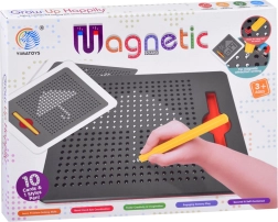 Odkrijte zabavo in učenje v enem s to magnetno risalno tablico. S pomočjo magnetnega pisala ustvarjate slike iz kovinskih kroglic, ki skočijo na površje, z enostavnim pritiskom prsta pa jih potisnete nazaj. Priložene so šablone za navdih ter prosta ustvarjalnost, ki razvija kreativnost, fino motoriko, koncentracijo in prostorsko mišljenje.
