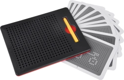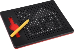Ta kompaktna magnetna tablica je idealna za otroke in odrasle kot sprostitveni in hkrati izobraževalni pripomoček. Magnetna konica privlači kroglice v odprtinice in ustvarja jasne pike, iz katerih enostavno sestavite slike, številke ali črke. Končan motiv preprosto izbrišete s potiskanjem kroglic nazaj – tablica je tako neskončno ponovno uporabna.