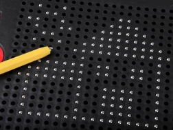 Magnetno pisalo dvigne kroglice na površje in ustvari jasne pike. Slike izbrišete s potiskanjem kroglic nazaj – brez papirja, barv ali baterij.