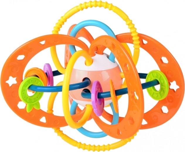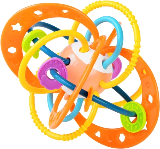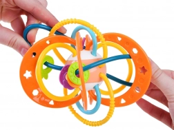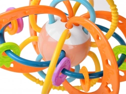 To barvito grizalo z ropotuljico dojenčku ponuja mnogo dražljajev za razvoj čutov. Prepletene zanke so za majhne ročice lahko oprijemljive, izmenjujoče se teksture masirajo dlesen in lajšajo nelagodje pri rasti zobkov. Lahka zasnova je idealna za doma in na poti.