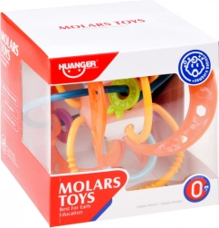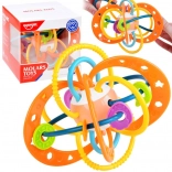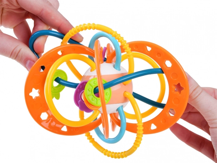 Lahko in varno senzorično grizalo s prepletenimi barvnimi zankami spodbuja fino motoriko, pomirja pri izraščanju zobkov in vabi k odkrivanju različnih tekstur in oblik. Vsi robovi so zaobljeni, uporabljeni materiali pa varni za otroke od 0 mesecev.