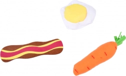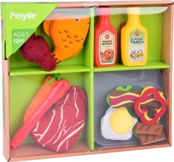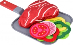 Od steaka in ribe preko jajca in slanine do paradižnika, čebule, solate, korenja in paprik – set spodbuja spoznavanje živil in uravnoteženega prehranjevanja skozi igro.