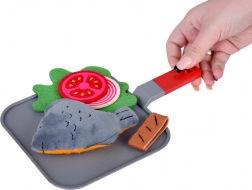 Odkrijte kreativno kuhanje v kuhinji z mehkim kuharskim setom za otroke. Barvita tekstilna živila in plastični pripomočki spodbujajo domišljijo, fino motoriko in učenje zdravih navad. V setu najdete ponev in klešče, kose kot so steak, riba, piščančji file in trakci, ter priljubljena jajce, slanina, zelenjava in omake – vse varno in prijetno na dotik.