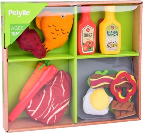 Mehka kuharska set za kuhanje – tekstilna živila s steakom, ribo in dodatki