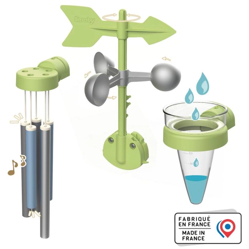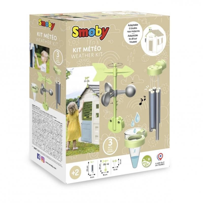 Meteorološka postaja za hišice Smoby je odlična zbirka za male raziskovalce, ki se želijo naučiti raziskovati in razumeti vreme. Združljiva z vsemi hišicami Smoby, ta set ponuja zabavne možnosti, kako lahko otroci opazujejo in odkrivajo podnebne pojave.
