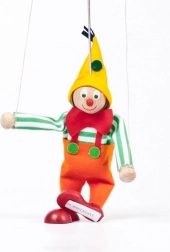 Klovn Jarmil v pisanem oblačilu s tipično kapo je simpatična lesena marioneta, ki jo otroci zlahka oživijo s pomočjo vodilnih nitk. Zaradi kakovostne ročne izdelave v varovani delavnici je vsaka lutka izvirnik in se lahko malenkostno razlikuje v barvnih podrobnostih.