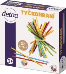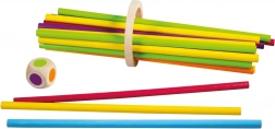30 kosov barvnih palčk, 1 igralna kocka, 1 lesen obroč