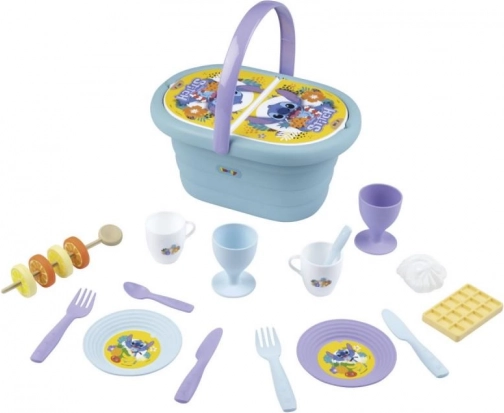 Uživajte v čarobnosti piknika z motivom STITCH! Ta lahka in enostavno prenosna otroška piknik košara z ergonomsko ročajem vsebuje 19 kosov pripomočkov za zabavno kuhanje in postrežbo v igri. Pisani jedilni komplet in dodatki so idealni za razvoj domišljije, deljenje prigrizkov in igro s prijatelji.