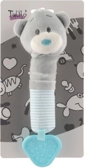 - Multifunkcionalna igrača – piskalo za stimulacijo sluha in grizalo za olajšanje dlesnim