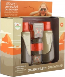 Daljnogled je mogoče preprosto razdružiti na dva dela – zabavna funkcija 2v1 za skupno raziskovanje s sorojencem ali prijateljem. Nastavljiva širina in udobni oprijemi zagotavljajo stabilen prijem in prijetno uporabo. Del paketa je praktična vrvica/pašček, zahvaljujoč kateremu imajo otroci daljnogled vedno pri roki in zmanjšajo tveganje padca.