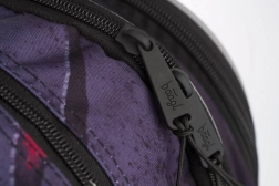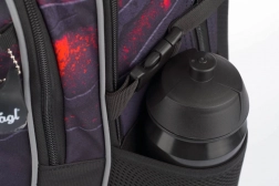 Robusten, vodoodporen material ščiti vsebino pred dežjem, medtem ko odsevni elementi povečujejo varnost v mraku. Stranska žepa iz čvrste mrežice sta idealna za steklenico z napitkom. Popolnoma nastavljivi ramenski, prsni in stranski kompresijski trakovi omogočajo natančno prilagoditev postavi otroka.