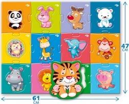 Po sestavljanju meri 61 × 47 cm, kar je idealna velikost za igro na tleh ali mizi. Odličen način, da otroci spoznajo živali z vsega sveta.