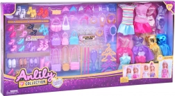 Pobegnite v svet mode z Anlily zbirka za punčke! Ta pisani set vsebuje deset različnih oblek v odtenkih in dizajnih, ki spodbujajo k neskončnim modnim kombinacijam: