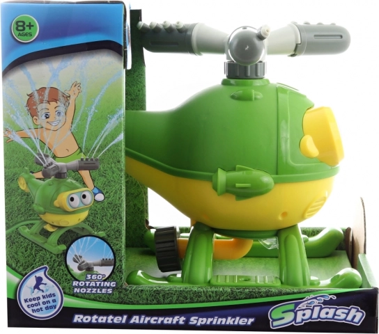 Vodna razpršilna helikopterja je odlična zabava za otroke, ki se preprosto priključi na vrtno cev. Opazujte, kako se njeni propelerji vrtijo in pršijo vodo.