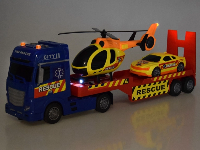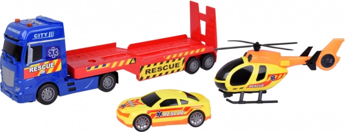 Interaktivni reševalni set s tovornim vozilom, helikopterjem in avtom za ustvarjalno igro, idealno darilo za otroke.