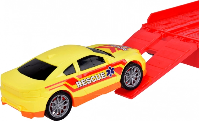 Omogočite svojim otrokom, da se potopijo v razburljiv svet reševalnih akcij s tem izjemnim kompletom! Zabava vključuje realističen scenarij z vozili, kot so tovorno vozilo z odstranljivo ploščadjo, helikopter in osebni avto.