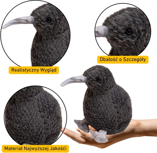 Ljubka plišasta ptica kivi višine 17 cm je izdelana iz mehkega kakovostnega pliša in navduši s svojim realističnim videzom. Idealna je kot objemajoča igrača in hkrati kot stilna dekoracija otroške sobe, izpolnjuje varnostne standarde CE in EN71 ter razveseli male in velike ljubitelje narave.