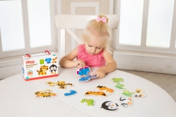 Komplet vsebuje 5 obrisnih sestavljank z motivi živali