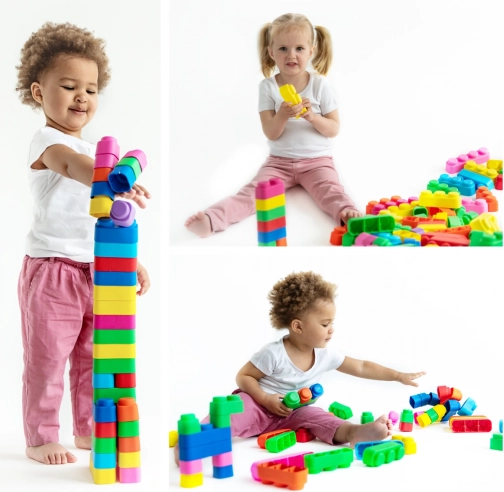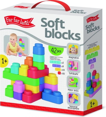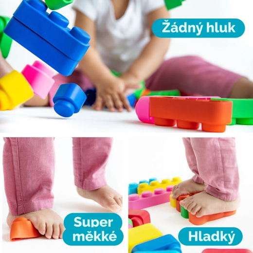 Vsi bloki so izdelani iz mehkega materiala, ki je varen za otroško igro in zagotavlja, da se otroci med igro ne poškodujejo.