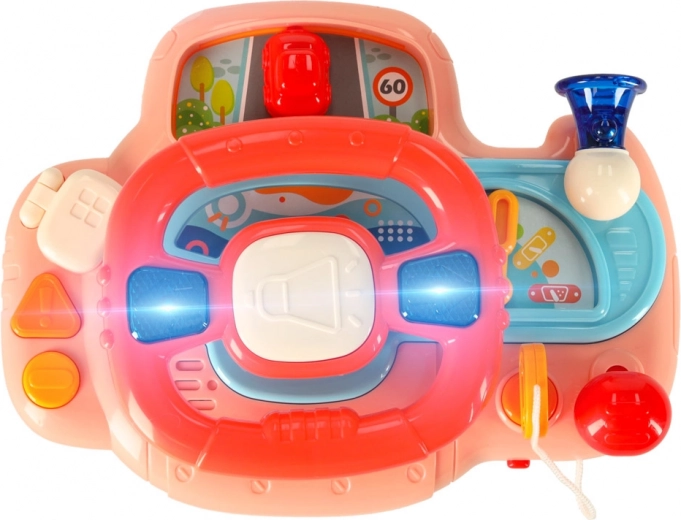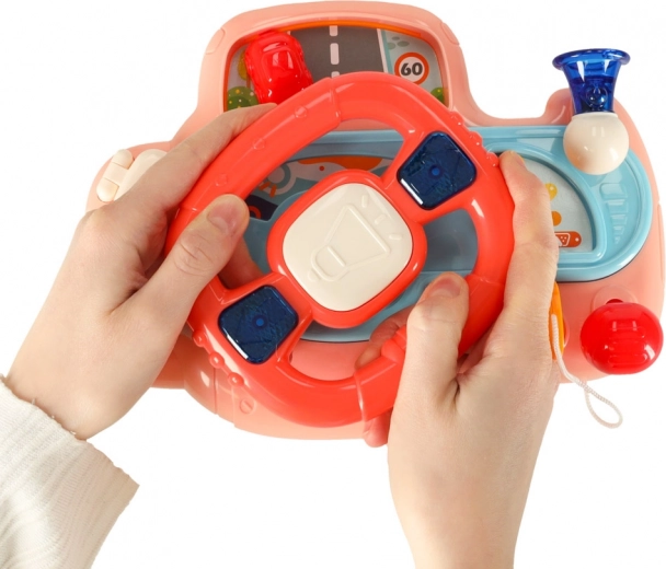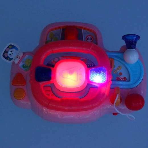 Interaktiven otroški volan je odlična igrača za ustvarjalno igro doma in na poti. Otrok lahko vrti volan in “vozi” majhen avtomobilček na armaturni plošči, pri čemer ga spremljajo zagon motorja, hupa, smerne utripalke z lučkami in vesele melodije. Z možnostjo nastavitve glasnosti igro preprosto prilagodite okolju.