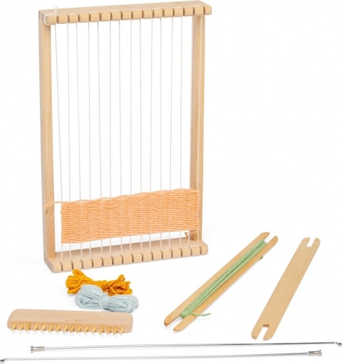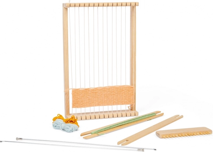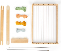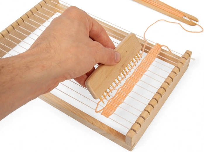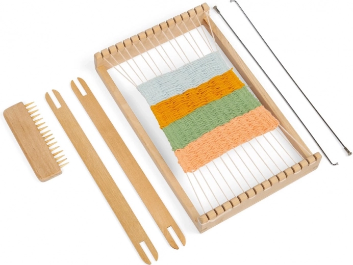 Ta leseni statve je idealen za otroke, ki želijo preizkusiti ročno tkanje tkanin. Izdelan je iz visokokakovostnih materialov s certifikatom FSC\u00ae, kar zagotavlja trajnostne prakse gozdarstva. Orodje pomaga razvijati ne le spretnost, ampak tudi koncentracijo in potrpežljivost.