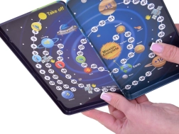 - Magnetna plošča: Dimenzije 31 x 15 cm, vsebuje kozmično razvrstitev in planete.