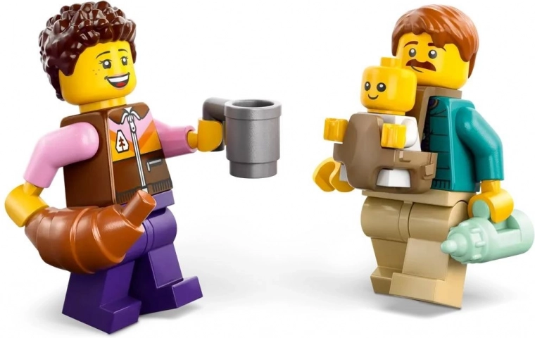 Odpravite se na sanjske izlete s setom LEGO City počitniški avtodom. Odprt notranji del skriva sodoben bivalni prostor s kuhinjo, straniščem, pogradoma in posteljico, ne manjkajo miza in stoli za zunaj in znotraj, kitara ter kurišče. Dodajte minifigurice mame, očeta in dojenčka ter uživajte v kreativni igri in pripovedovanju zgodb vsak dan.