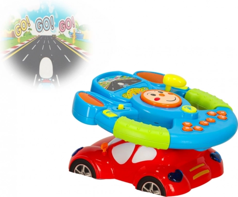 Vgrajen projektor projicira sliko ceste, kar otrokom omogoča, da si predstavljajo, da resnično vozijo avto. Ta funkcija spodbuja domišljijo in podpira kreativno igro.