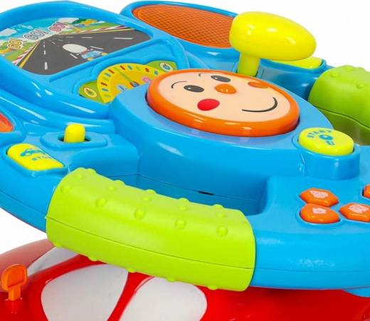 Volan ponuja otrokom realistične zvočne učinke, kot so sirene vozil, melodije in zvoki zaviranja, ki igri dodajo dinamiko. Otroci lahko zvoke preprosto izbirajo z intuitivnimi gumbi, nastavitev glasnosti pa omogoča prilagoditev izkušnje.