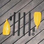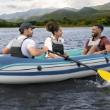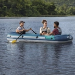 Pakiranje vključuje vse, kar potrebujete za vaše vodne pustolovščine: čoln, par vesel, tlačilko in komplet za popravilo. Vse je enostavno za sestavo in prenašanje.