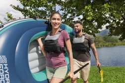 Maksimalno udobje zagotavljajo napihljivi sedeži in mehko dno, ki blaži neravnine in izboljšuje stabilnost posadke. Obodna vrv in čvrsti nosilci za vesla olajšajo vkrcanje, prenašanje in varno privezovanje ob bregu.