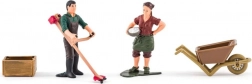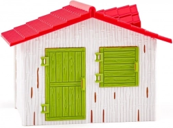 Barvit skedenj z živalmi in dve figurici kmetov ustvarjata živahno igralno okolje, kjer si otroci zamislijo nešteto scenarijev – od hranjenja do pospravljanja na dvorišču.