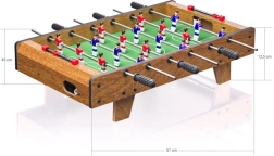 Ta leseni namizni nogomet prinaša hitro, napeto in varno zabavo za otroke in odrasle. Trdna konstrukcija iz kakovostnega MDF zagotavlja dolgo življenjsko dobo, zaobljeni robovi pa skrbijo za varnost pri igri. Zaradi kompaktnih mer ga preprosto postavite na mizo in pospravite, ko ne igrate.