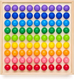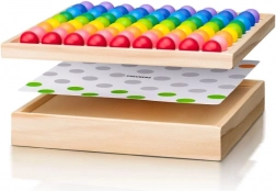 Ta lesena kroglična igra ponuja bogate možnosti igre in učenja v enem. Otroci sestavljajo slike po predlogah, zlagajo kroglice v majhne piramide ter urijo fino motoriko in koordinacijo oko–roka. Zahvaljujoč pregledni mreži in živim barvam si zlahka osvojijo prepoznavanje barv, štetje in vzorce.