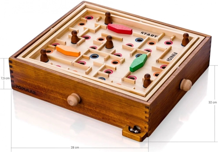 Lesen nagibni labirint je klasična namizna igra, ki preizkusi otroke in odrasle v natančnosti ter zbranosti. Cilj je varno popeljati kroglico skozi zapleten labirint od START do FINISH in je ne pustiti pasti v odprtine. Robustna lesena konstrukcija je prijetna na dotik in odporna tudi pri pogosti uporabi.