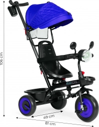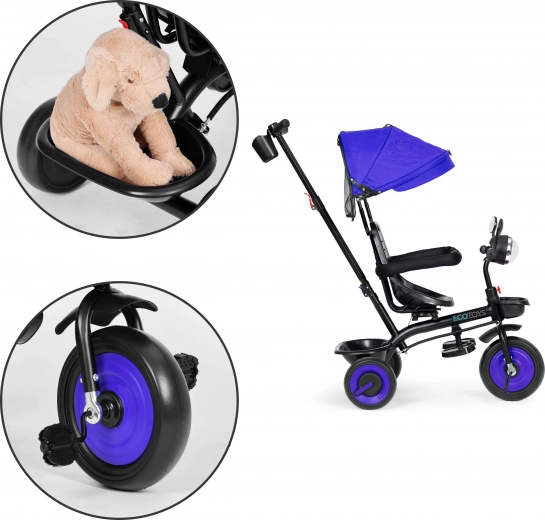 Tricikel ECOTOYS združuje udobje vozička z veseljem vožnje. Zahvaljujoč 360° vrtljivemu sedežu lahko otroka vozite obrnjeno proti staršu ali v smeri vožnje. Močan jekleni okvir, oblazinjenje iz odpornega blaga Oxford in EVA kolesa (10"/8") zagotavljajo stabilno in tiho vožnjo doma in na prostem.